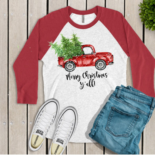 Merry Christmas Y'all Red Truck Raglan