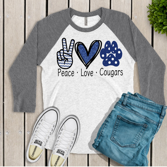 Peace Love Cougars Raglan Shirt